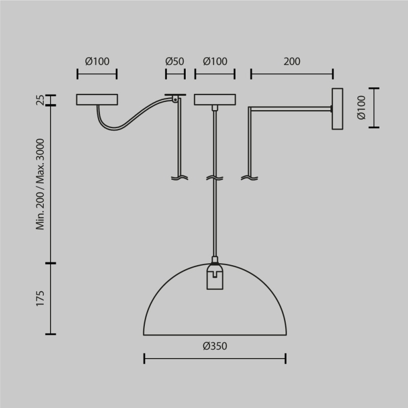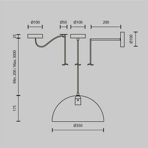 Материал арматуры - металл. Цвета - черный, белый, а также два актуальных оттенка серого. Универсальные и базовые формы плафонов. В комплекте: крюк, дополнительное основание и металлический элемент, которые позволяют закрепить подвес в нужной зоне или использовать его в качестве бра. Цоколь Е27. Лампы не входят в комлпект.