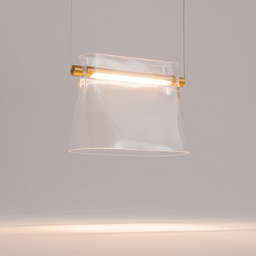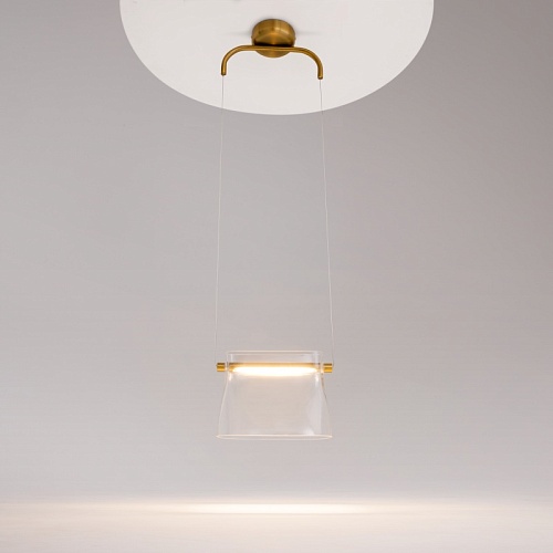 Цвет металлической арматуры — латунь с сатинированным финишем, плафоны — прозрачное стекло. Источник света: LED. Цветовая температура светильников 3000К, угол рассеивания — 120 градусов. Настенные бра и подвесные светильники оснащены регулируемым проводом длиной до 3 метров, что позволяет использовать их в помещениях с высокими потолками.
