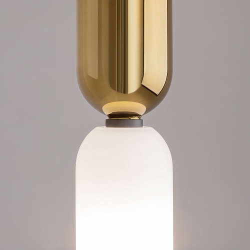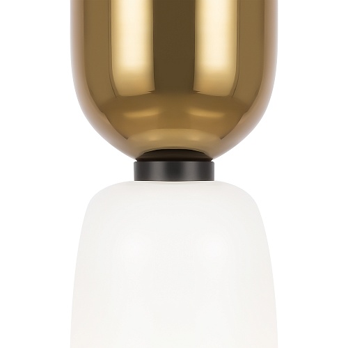 Металлическая арматура, цвет - черный. Светильники стилизованы под форму песочных часов с обтекаемой формой. Керамические элементы с глянцеовй глазурью. Подвесные светильники с плафонами из белой керамики с прозрачным, черно-белым, золото-белым и белым стеклом. Регулируемая высота подвесных светильников.