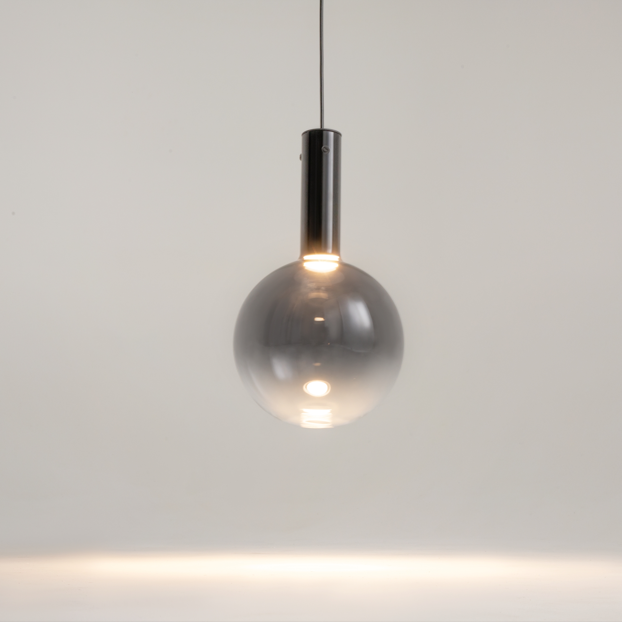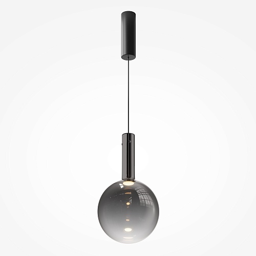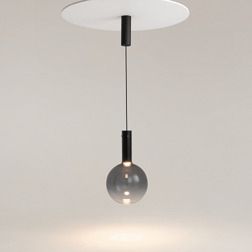 Металлическая арматура, цвет - черный, белый. Выдувной плафон-шар из стекла с вытянутым цилиндрическим основанием в трех цветах: дымчато-черный, туманно-белый, бежево-коньячный. LED-источник света в основании плафона. Цветовая температура 3000К. Два диаметра плафонов и регулируемая длина проводов для создания разнообразных композиций.