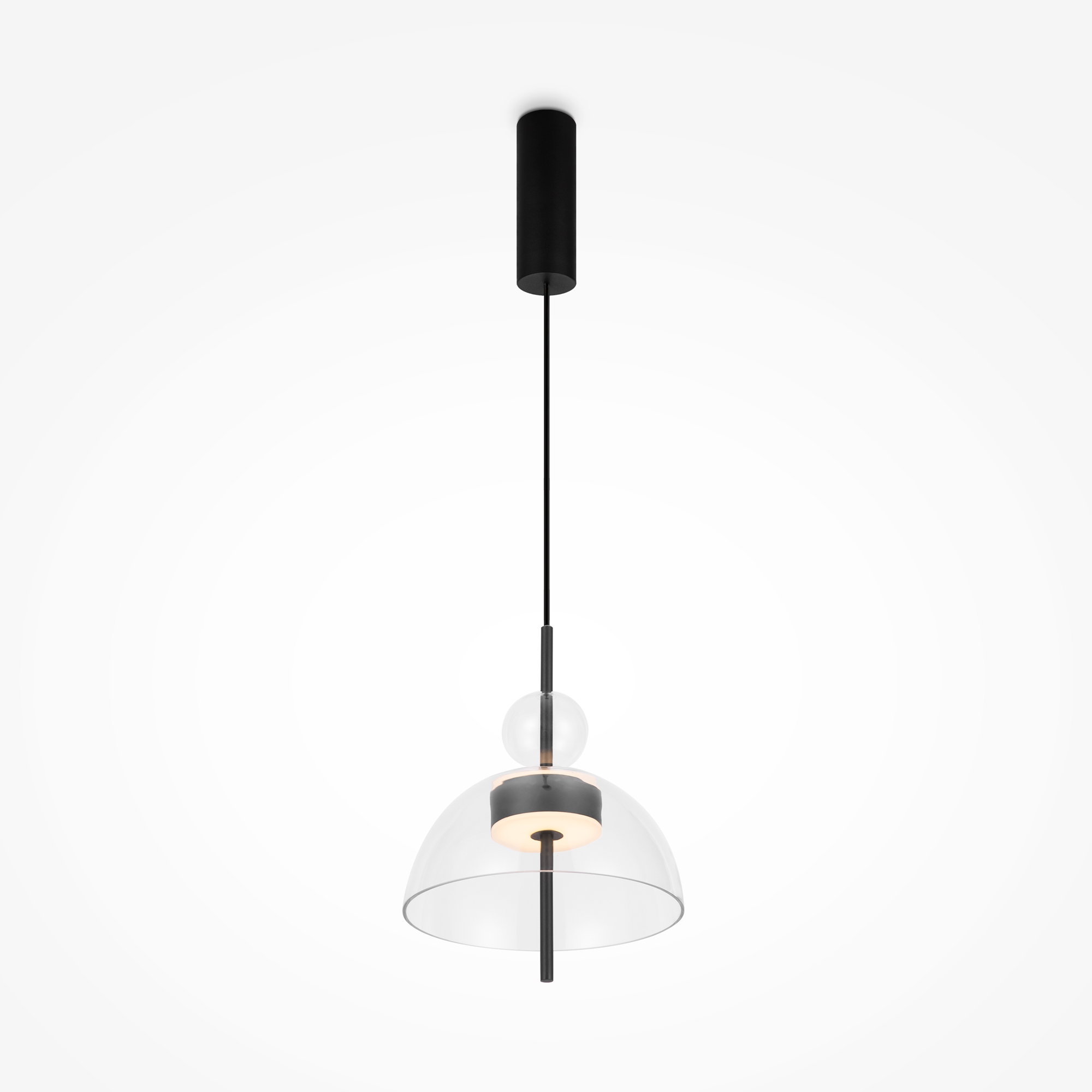 Материал арматуры - металл, цвет - черный. Уникальный дизайн минималистичных плафонов из стекла в трех цветах – дымчатый, прозрачный и серый. LED источник света, цветовая температура - 3000К. Регулируемая длина тросов.