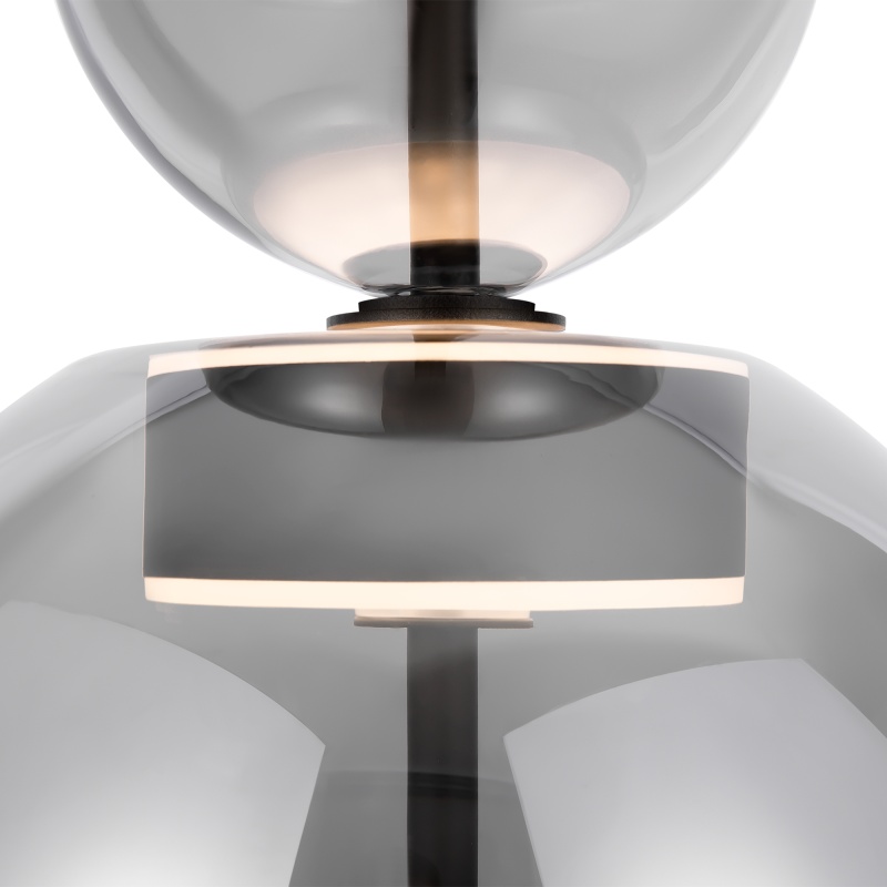 Материал арматуры - металл, цвет - черный. Уникальный дизайн минималистичных плафонов из стекла в трех цветах – дымчатый, прозрачный и серый. LED источник света, цветовая температура - 3000К. Регулируемая длина тросов.