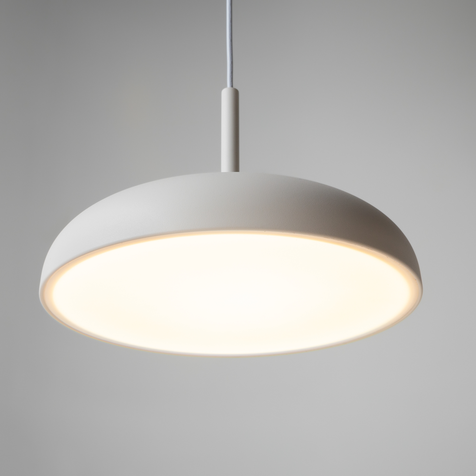 Арматура и плафон из металла,цвета - черный, белый, серый. Шагреневая поверхность - предотвращает следы от рук и пыли. Белый матовый рассеиватель из акрила хорошо пропускает свет, предотвращает слепящий эффект. Регулируемая длина провода - до 3 метров. LED-источник света. Цветовая температура 3000К.