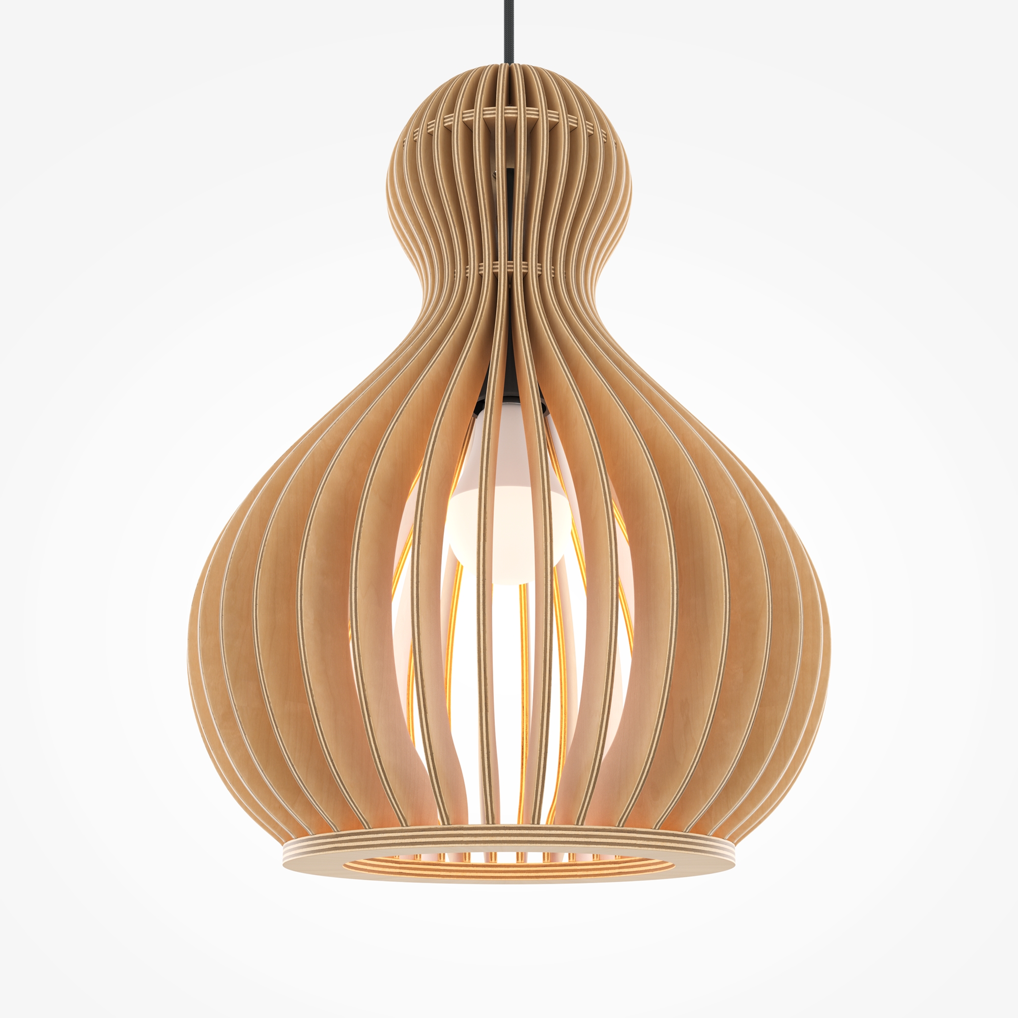 Материал арматуры – металл, цвет – черный. Абажур – 5-ти слойная фанера бежевого оттенка, покрытая специальным ла- ком. Тканевый черный провод. Регулируемая высота. Простые лаконичные форма, природные материалы. Цоколь E27.