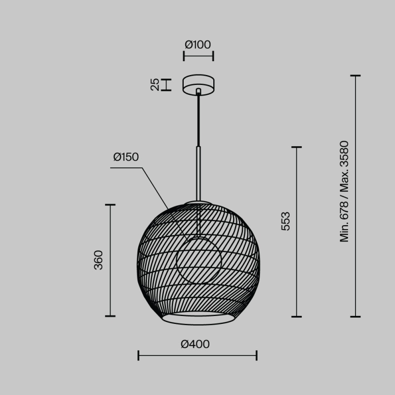 Характеристики Подвесной светильник Maytoni Cane MOD204PL-01BG