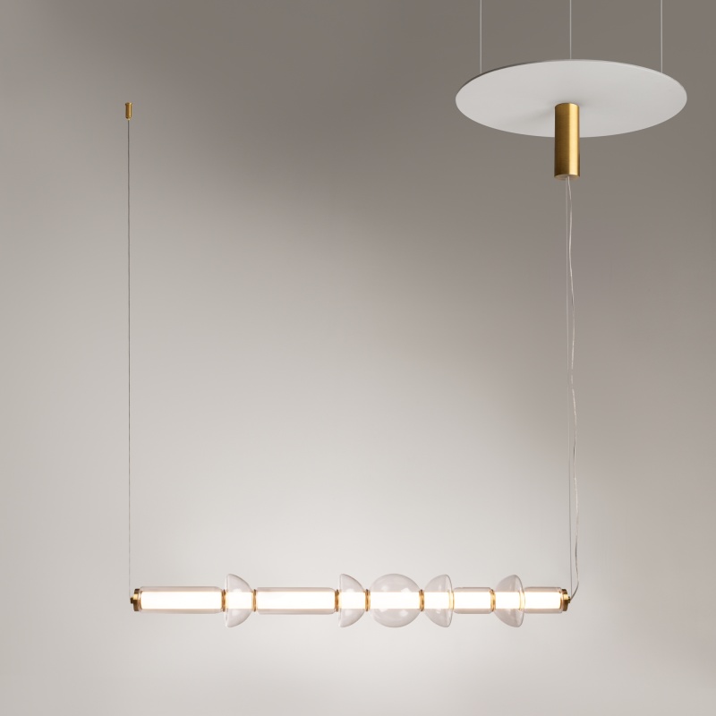 Арматура - металл, цвет - черный, латунь. Плафоны - прозрачное стекло. Крепление 2в1 - горизонтальное и вертикальное. Конструкция и дизайн идеальны для составления композиций. Силуэты светильника напоминают образ фантастических космических кораблей. Световой поток - 4800 Лм, для основного освещения. LED-источник света. Цветовая температура - 3000К.