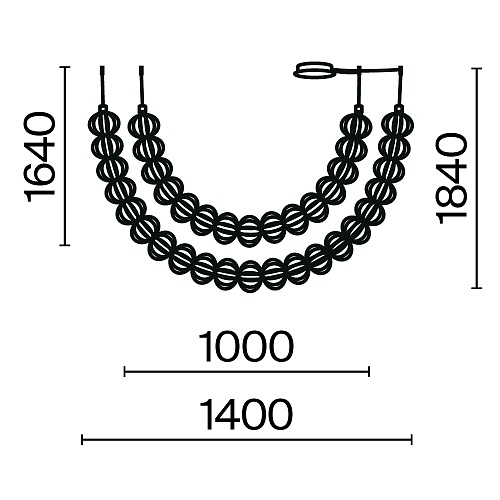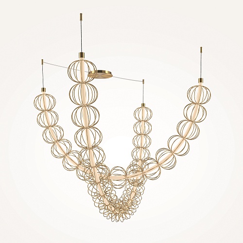 Арматура - металл, цвет - золото. Декоративные проволочные плафоны-сферы - ручная работа. Горизонтальные подвесы в двух вариатах монтажа - накладном и скрытом. Све товой элемент - силиконоваая трубка с LED-источником. Цветовая температура 3000К.