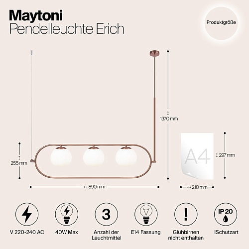 Характеристики Подвесной светильник Maytoni Erich MOD221PL-03BS