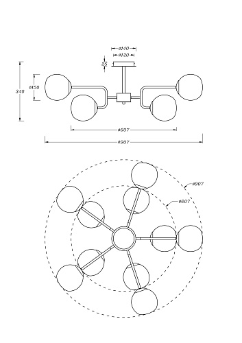 • Диаметр потолочной чаши (мм)