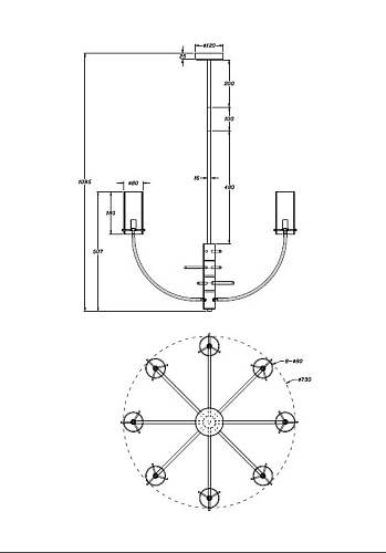 • Диаметр потолочной чаши (мм)