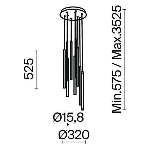 Материал арматуры - алюминий, цвет - черный, латунь. Изящные металлические «струны» в цвет арматуры со встроенным световым модулем прикрыты белым акриловым рассеивателем. Серия для акцентного и дополнительного освещения. Длина подвесных моделей регулируется. LED-источник света. У подвесных светильников есть функция диммирования. Цветовая температура 3000К.