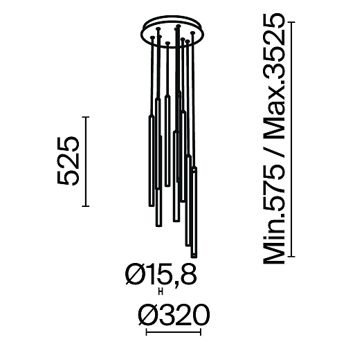 Материал арматуры - алюминий, цвет - черный, латунь. Изящные металлические «струны» в цвет арматуры со встроенным световым модулем прикрыты белым акриловым рассеивателем. Серия для акцентного и дополнительного освещения. Длина подвесных моделей регулируется. LED-источник света. У подвесных светильников есть функция диммирования. Цветовая температура 3000К.