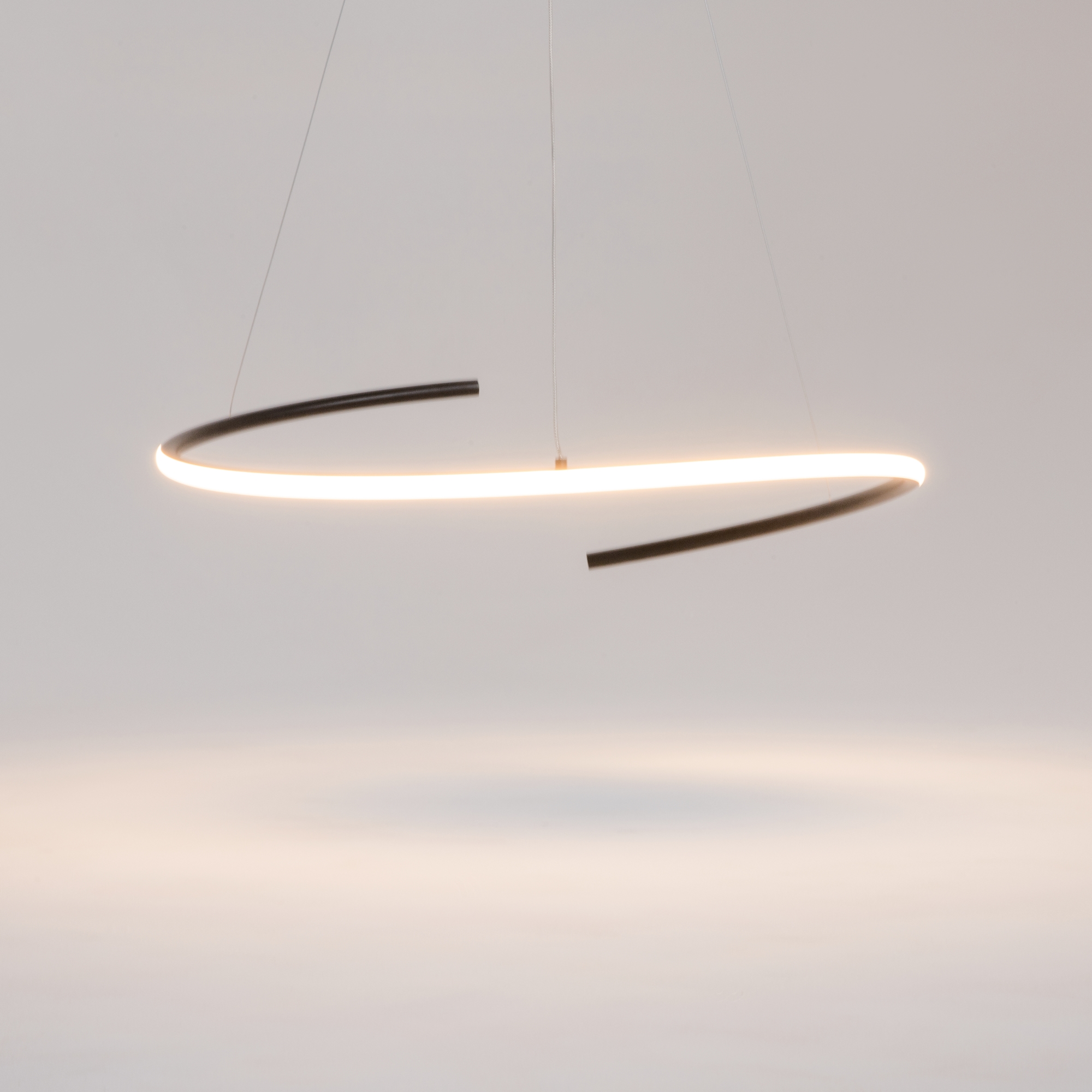 Металлическая арматура, цвета - черный, латунь. Закругленные световые элементыиз силикона со встроенным LED-источником света по всему периметру. Регулируемый диапазон цветовой тмепературы 2600К-3500К для светильников в латуни и 3000К-4000К для черных. Регулируема длина тросов. Фантазийный образ хаотичных фрагментов свободно парящих в пространстве.