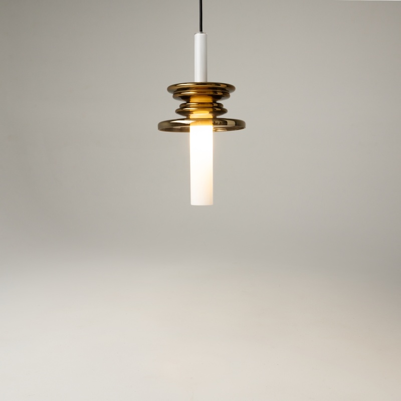 Уникальная многослойная конструкция в образе звуковой волны. Магнитная потололчная чаша из металла без видимых креплений. Плафон-трубка из белого полупрозрачного стекла. Декоративный волнообразный «звуковой» элемент из литого стекла в центре плафона. Цвета - синий, черный, золото, серый. Источник света - лампа с цоколем G9.