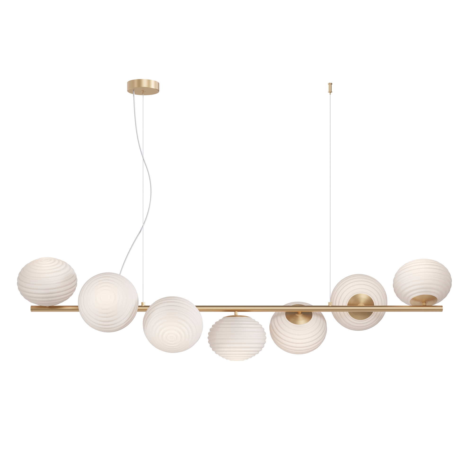 Материал арматуры - металл, цвета - черный, золото. «Динамичные» круглые плафоны со спиральным рельефом. Материал плафонов - стекло, цвета - белый матовый, глянцевый дымчатый. Провод 3 метра, длина регулируется. Источник света - лампы с цоколем Е14, Е27.
