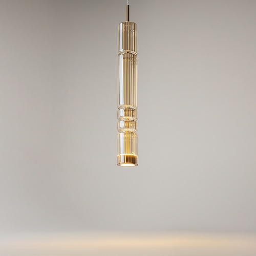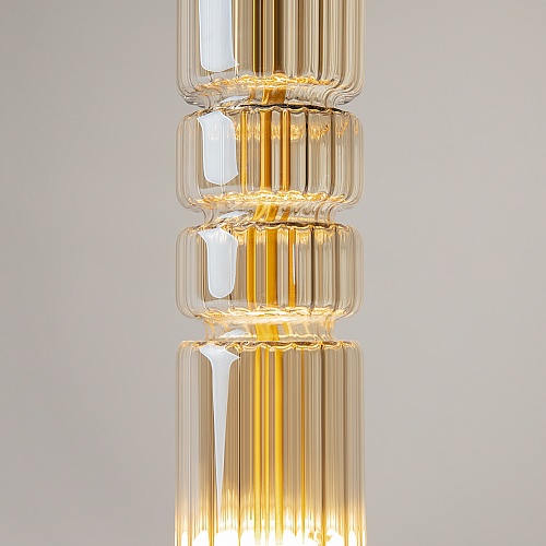 Арматура - металл, цвет - хром, черный. Цилиндрические плафоны из стекла с вертикальным рельефным рисунком в трех оттенках: прозрачный, коньячный, дымчатый. Метафора древнегреческих храмовых колонн в образе светильников. LED-источник света. Цветовая температура 3000К.