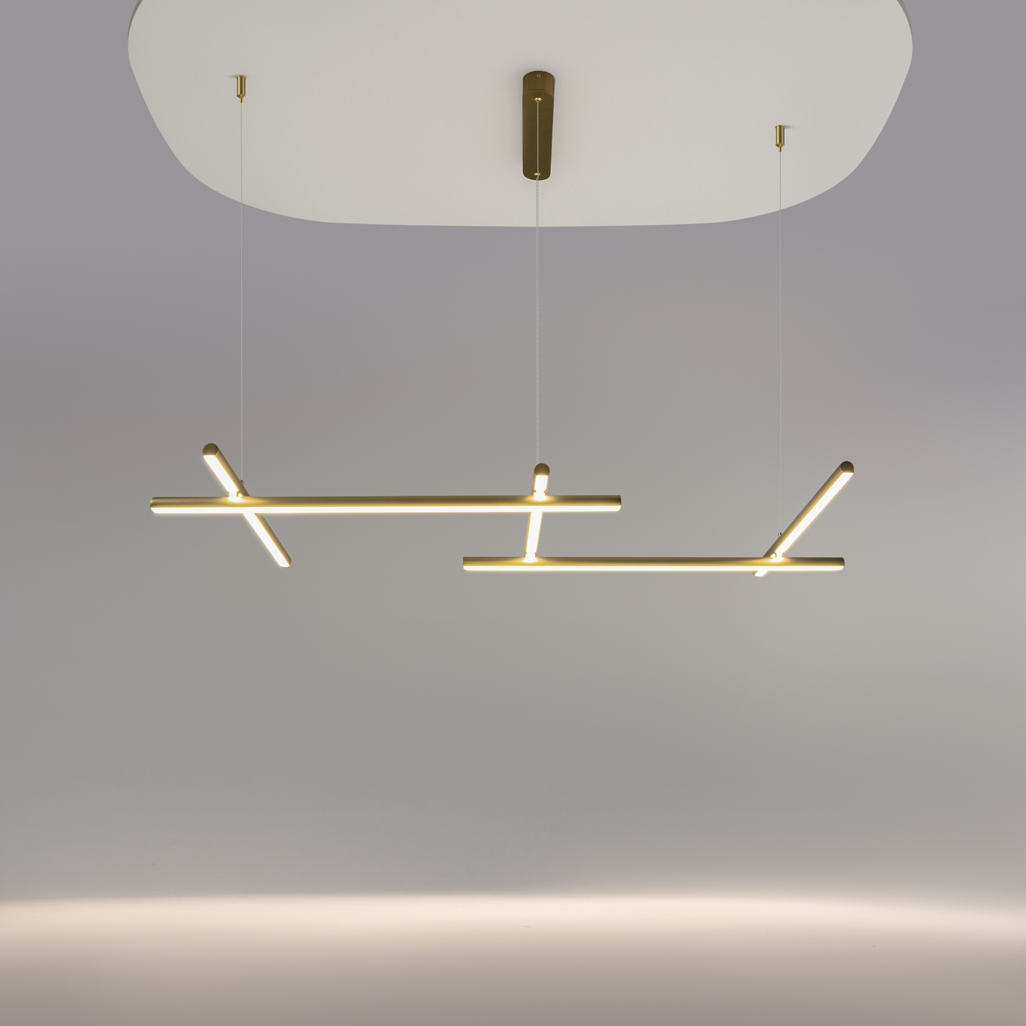 Металлическая арматура, цвет: золото. Встроенный LED-источник света. Рассеиватель из силикона. Цветовая температура 3000К. Подвесные светильники имеют регулируемый провод длиной 3 метра для помещений с высокими потолками.