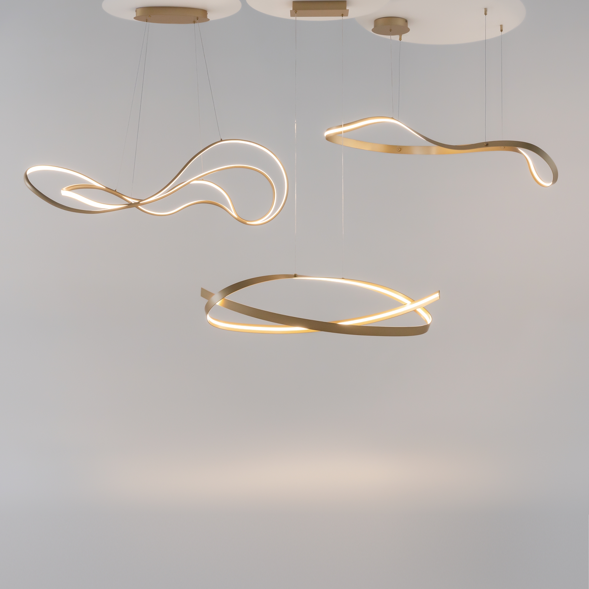 Материал арматуры — алюминий, цвет латунь. Силиконовый рассеиватель. LED-источник света, цветовая температура 3000К. Регулируемый провод у подвесных моделей - 3 метра.