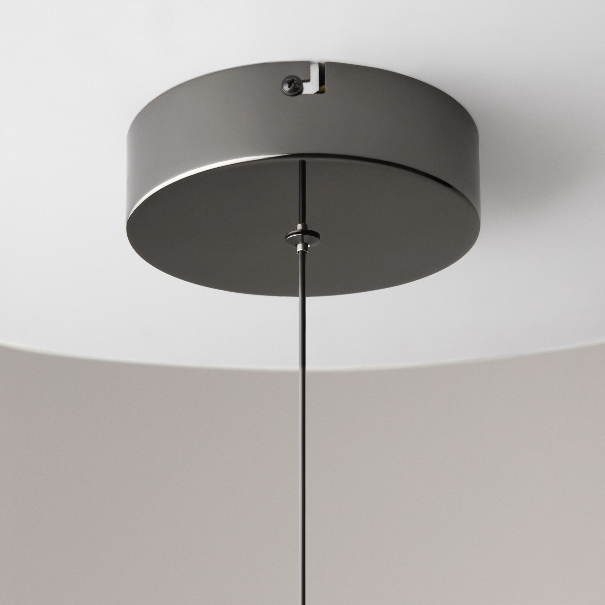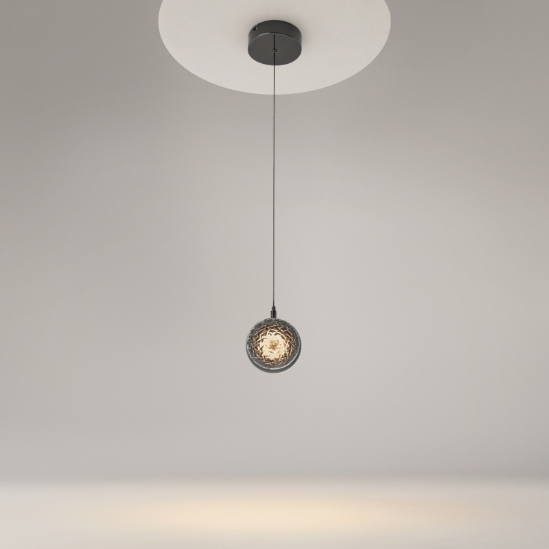 Два цветовых сочетания: сатинированная арматура из металла в цвете латунь в комбинации со стеклянными плафонами янтарного оттенка или трендовый черный хром с глянцевым финишем в сочетании с тонированными светло-серыми плафонами. Источник света: LED. Цветовая температура 3000К, угол рассеивания 120 градусов. Провод длиной 3 м можно регулировать по высоте — светильник подходит для помещений с высокими потолками.