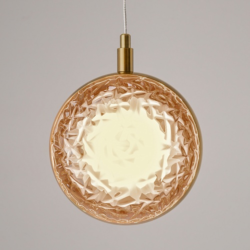 Два цветовых сочетания: сатинированная арматура из металла в цвете латунь в комбинации со стеклянными плафонами янтарного оттенка или трендовый черный хром с глянцевым финишем в сочетании с тонированными светло-серыми плафонами. Источник света: LED. Цветовая температура 3000К, угол рассеивания 120 градусов. Провод длиной 3 м можно регулировать по высоте — светильник подходит для помещений с высокими потолками.