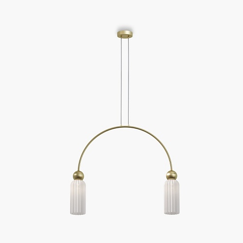 Металлическая арматура в цвете золота. Плафоны стеклянные нескольких цветов: коньячный, дымчатый, белый, серый. Источник света: цоколь Е14. Высота регулируется сегментами штанги или с помощью трехметрового провода. Серия применима в помещениях с высокими потолками. Поверхность стеклянных плафонов рифленая, усиливающая световые эффекты.