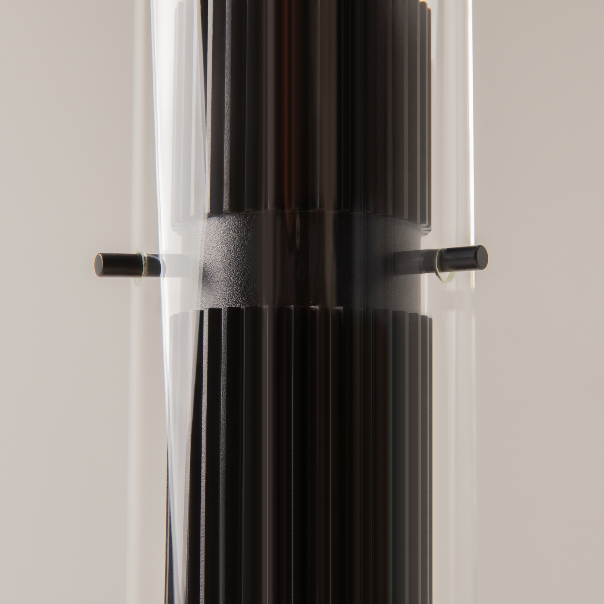 Материал арматуры — алюминий. Порошковое окрашивание в три цвета: матовый черный, матовый белый, матовое золото. Плафон с трендовой рифленой фактурой. Подвесные модели с внешним стеклянным элементом. Яркий направленный свет.