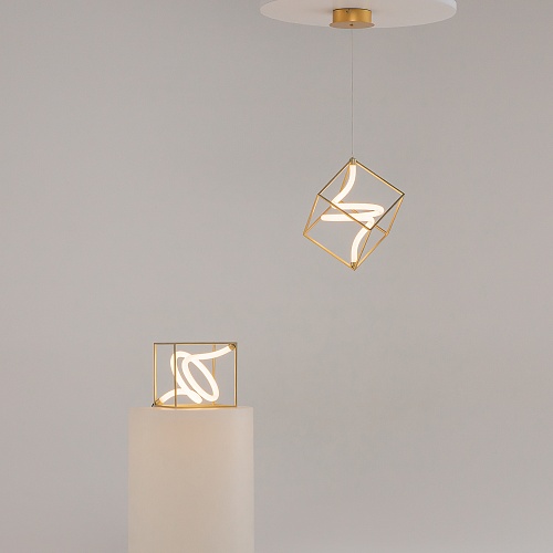 Металлическая арматура, цвет - латунь. Графичный силуэт. Источник света - гибкая неоновая трубка, расположенная внутри арматуры. Угол рассеивания — 120 градусов. Дизайн светильников подходит для интерьера в стиле лофт, а также индустриального стиля. Регулируемый провод подвесного светильника — 3 м.
