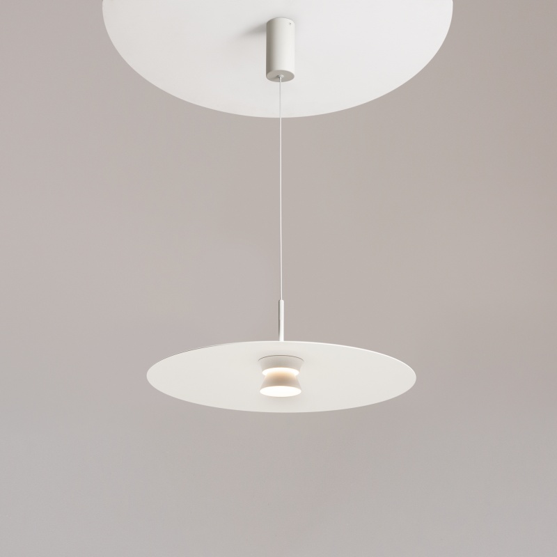 Серия Platte представлена одинарными подвесными светильниками диаметром 350 и 500 мм. Цвет металлической арматуры и плафонов – белый. Источник света – LED. Тип рассеивания — рассеянный. Цветовая температура — 3000 К. Угол рассеивания — 125°. В серии предусмотрен длинный регулируемый провод 3 м.
