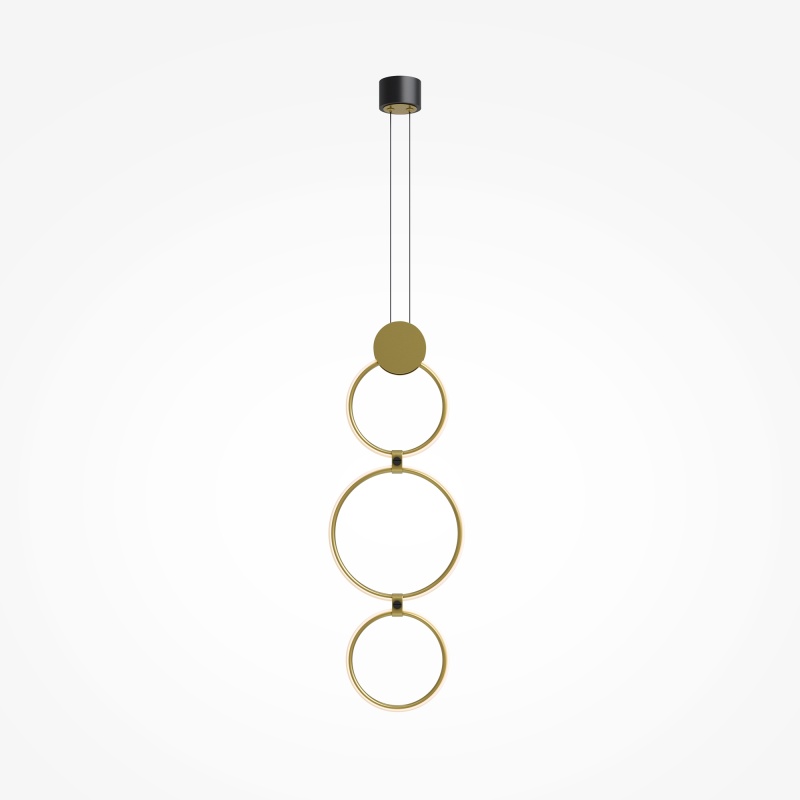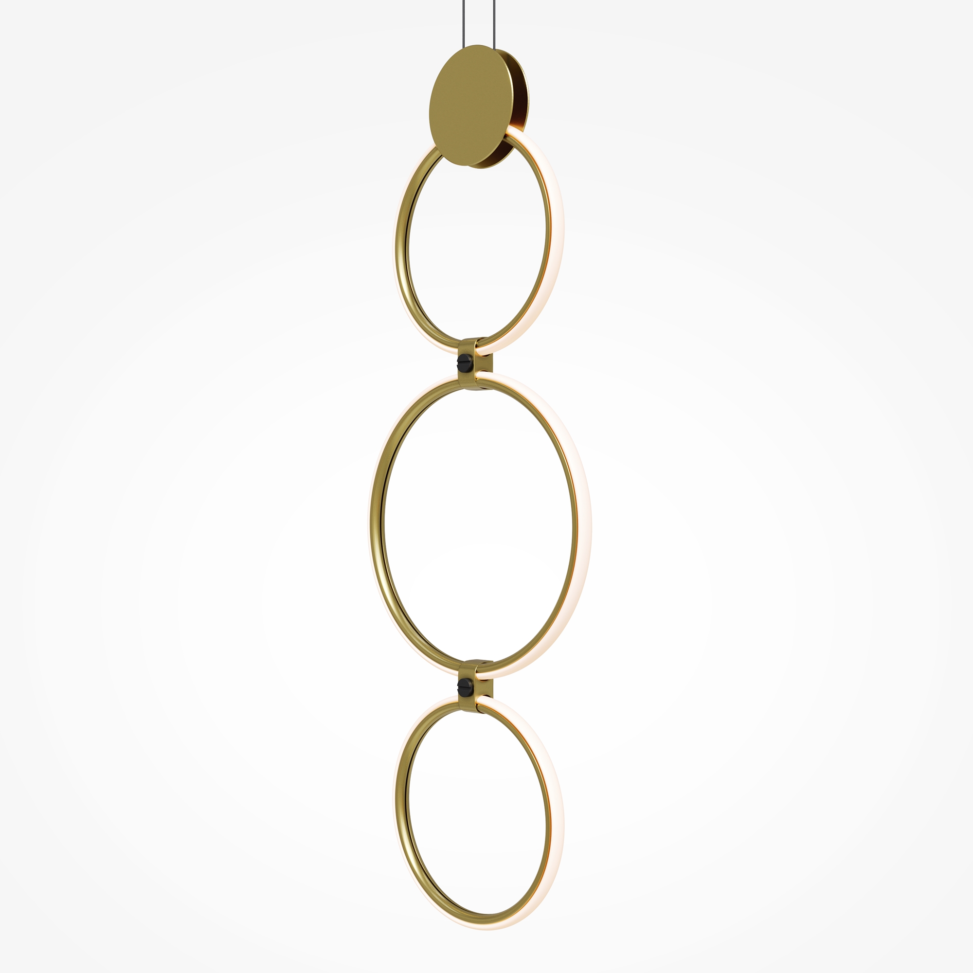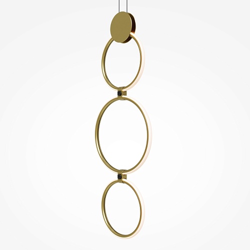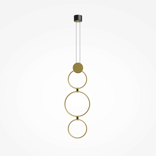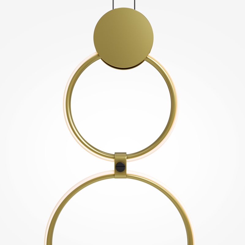 Серия Link представлена подвесными и настенными светильниками с разной вариацией светодиодных колец. Арматура - из металла в цвете латунь с чёрными элементами. Источник света — LED-кольца. Цветовая температура — 3000 K. Угол рассеивания — 125 градусов. Провод регулируемый, 3 метра.
