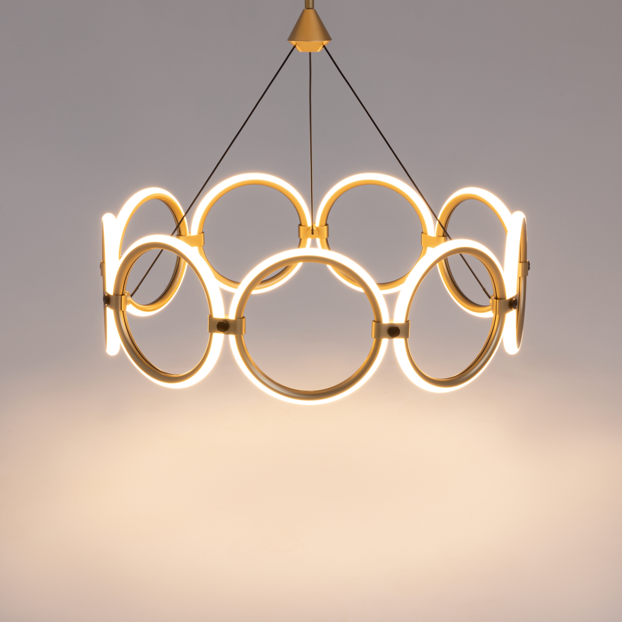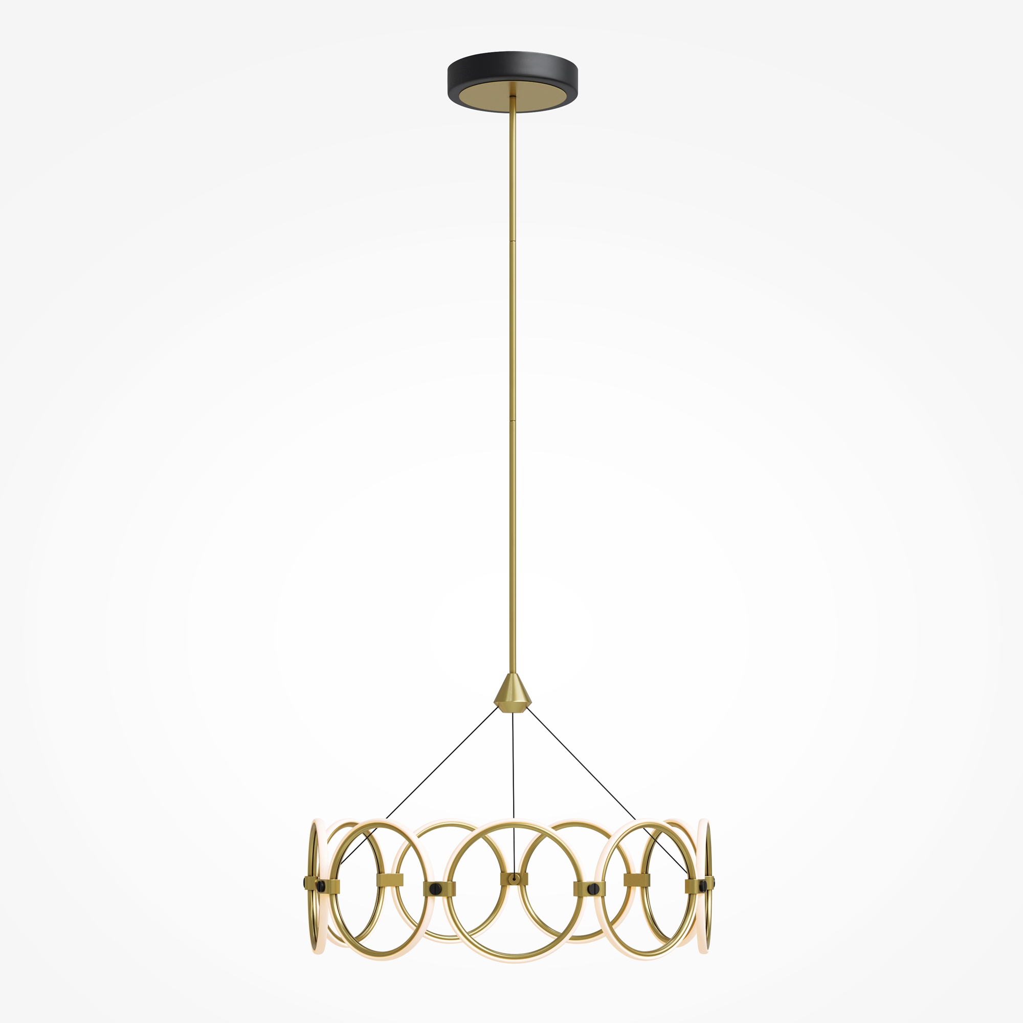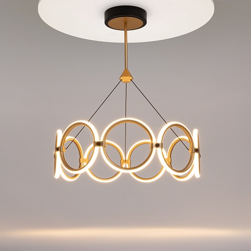 Серия Link представлена подвесными и настенными светильниками с разной вариацией светодиодных колец. Арматура - из металла в цвете латунь с чёрными элементами. Источник света — LED-кольца. Цветовая температура — 3000 K. Угол рассеивания — 125 градусов. Провод регулируемый, 3 метра.