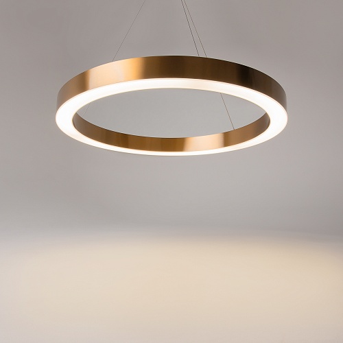 Материал арматуры – нержавеющая сталь, цвет – латунь. Интегрированный LED-источник света. Нейтральная цветовая температура 4000К. Трендовая форма окружности. В серии – подвесные модели различного диаметра.