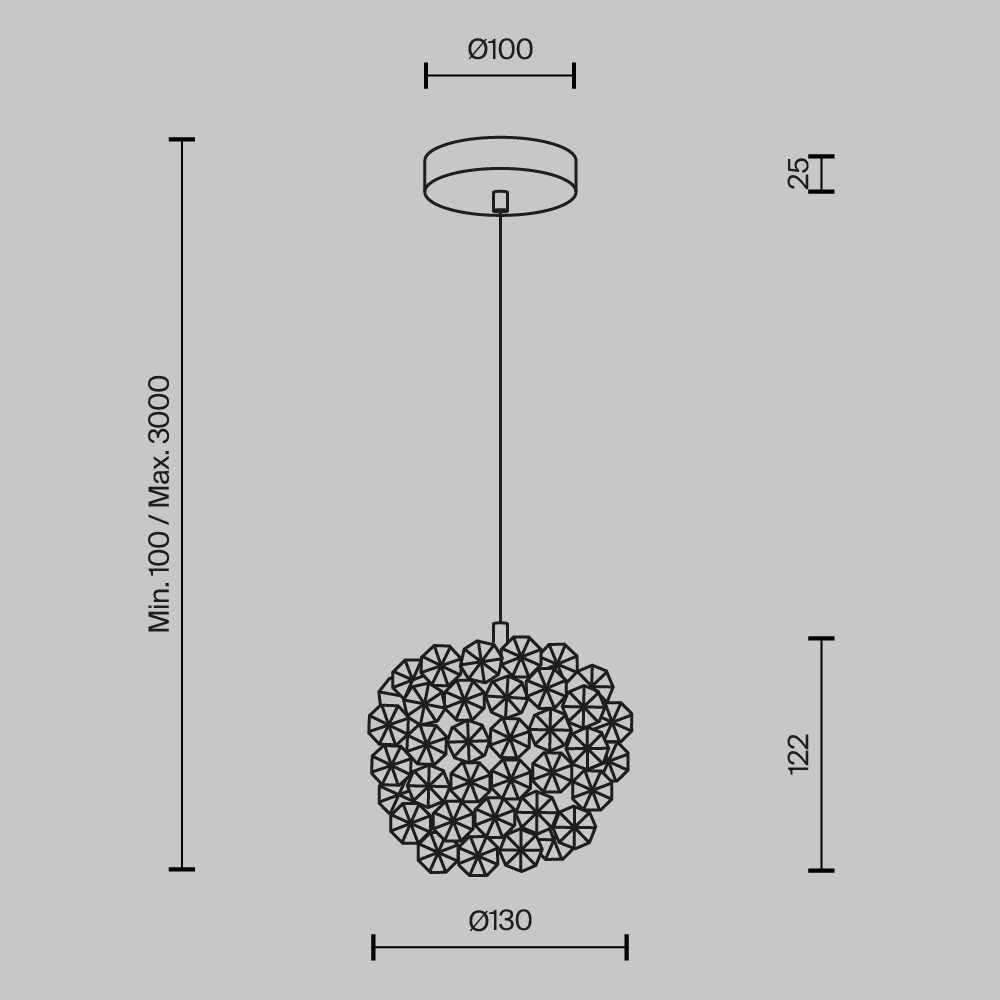 • Диаметр потолочной чаши (мм)
