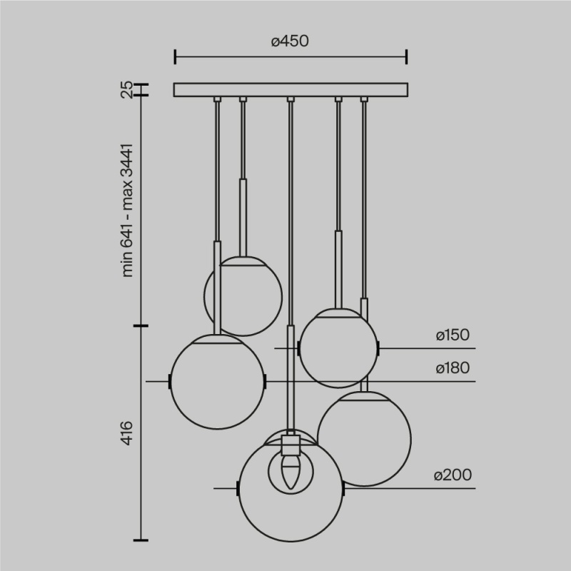 Материал арматуры – металл, цвет - золото, белый, черный. Округлые плафоны из матового белого стекла. Универсальные формы, минималистичный дизайн. Цоколь - E14. Лампы не входят в комплект. Регулируемая высота подвесных светильников.