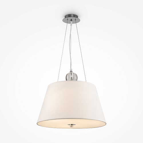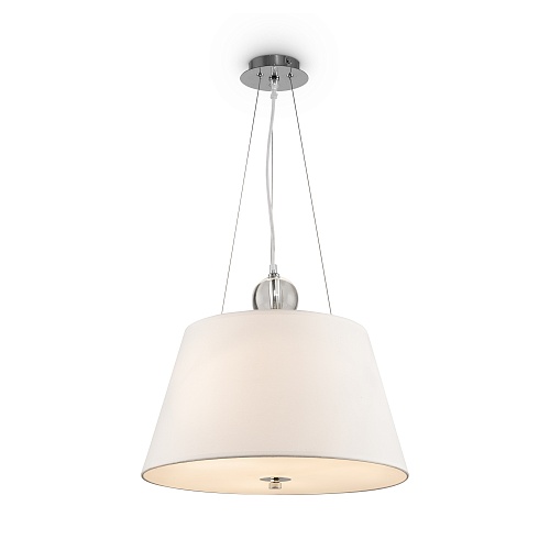 Металлическая арматура. Три цветовых решения: белый и хром, черный и хром, хром. Абажур из текстиля и льна, нанесенного на ПВХ. Цвета — бежевый, серый, белый. Источник света в подвесных моделях скрыт под матовым стеклом. Торшеры и настольные лампы с регулируемым кронштейном. Лампа с цоколем Е27.
