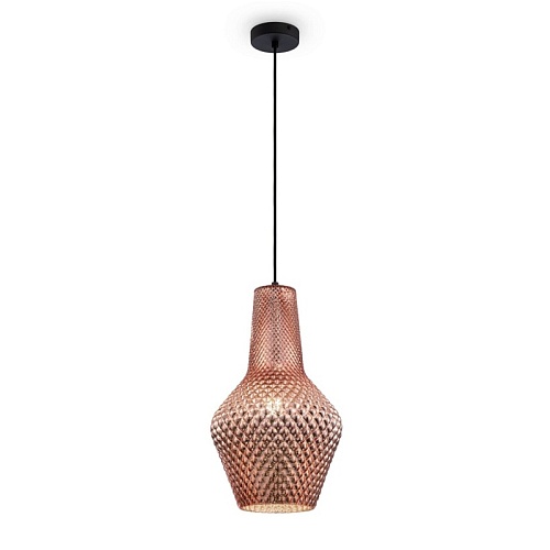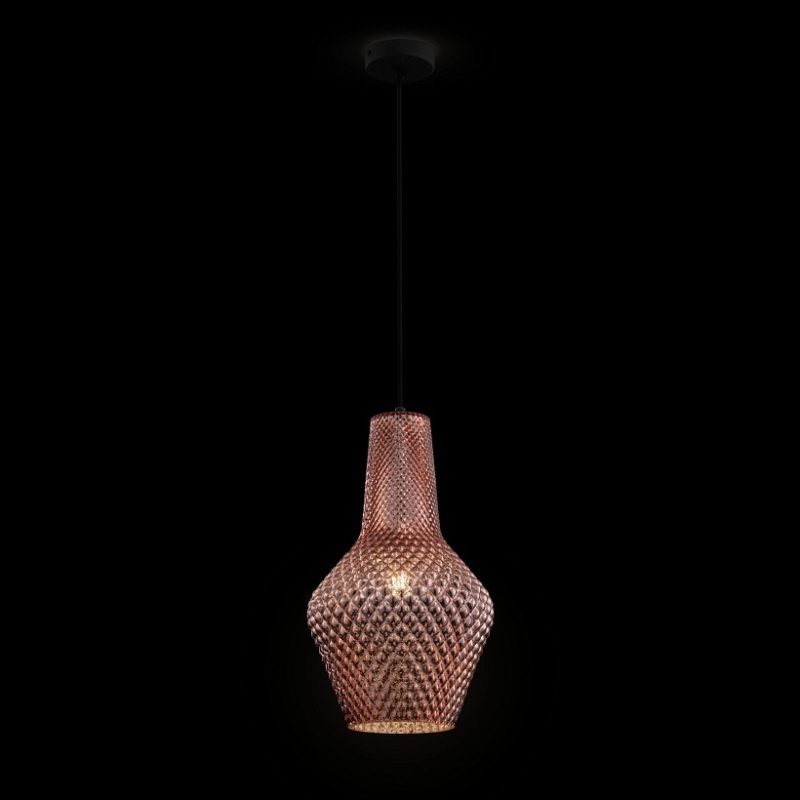 Арматура из металла в черном цвете. Фактурный плафон с рельефным рисунком, материал – выдувное стекло. Высота светильников ре