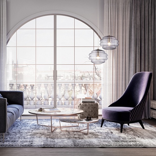 Плафоны в форме ульев — классическое ретро, органично соединенное с минималистичным современным дизайном и современной цветовой палитрой. Цветное прозрачное стекло, ставшее ключевым материалом в этой серии, представлено в четырех оттенках от романтичного небесно-синего до трендового латунного.