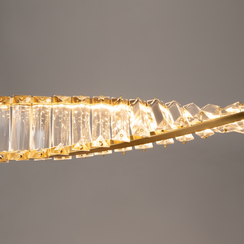 Металлическая арматура, цвет - латунь. Асимметричный хрустальный декор. LED-источник света. Цветовая температура - 3000К. Высокий индекс цветопередачи 90Ra