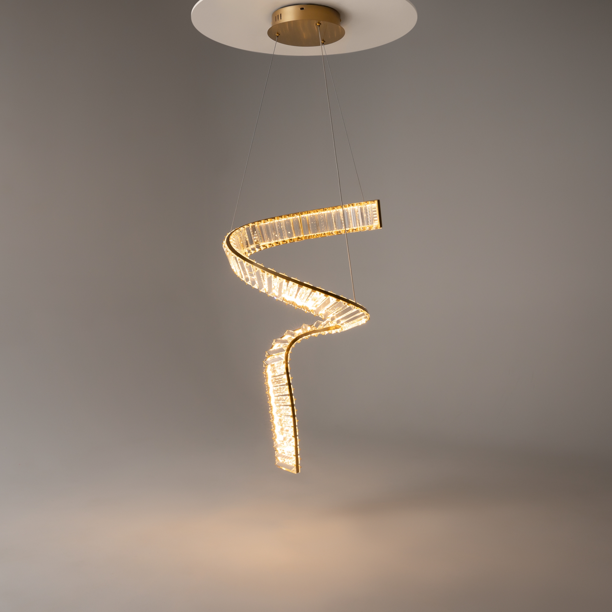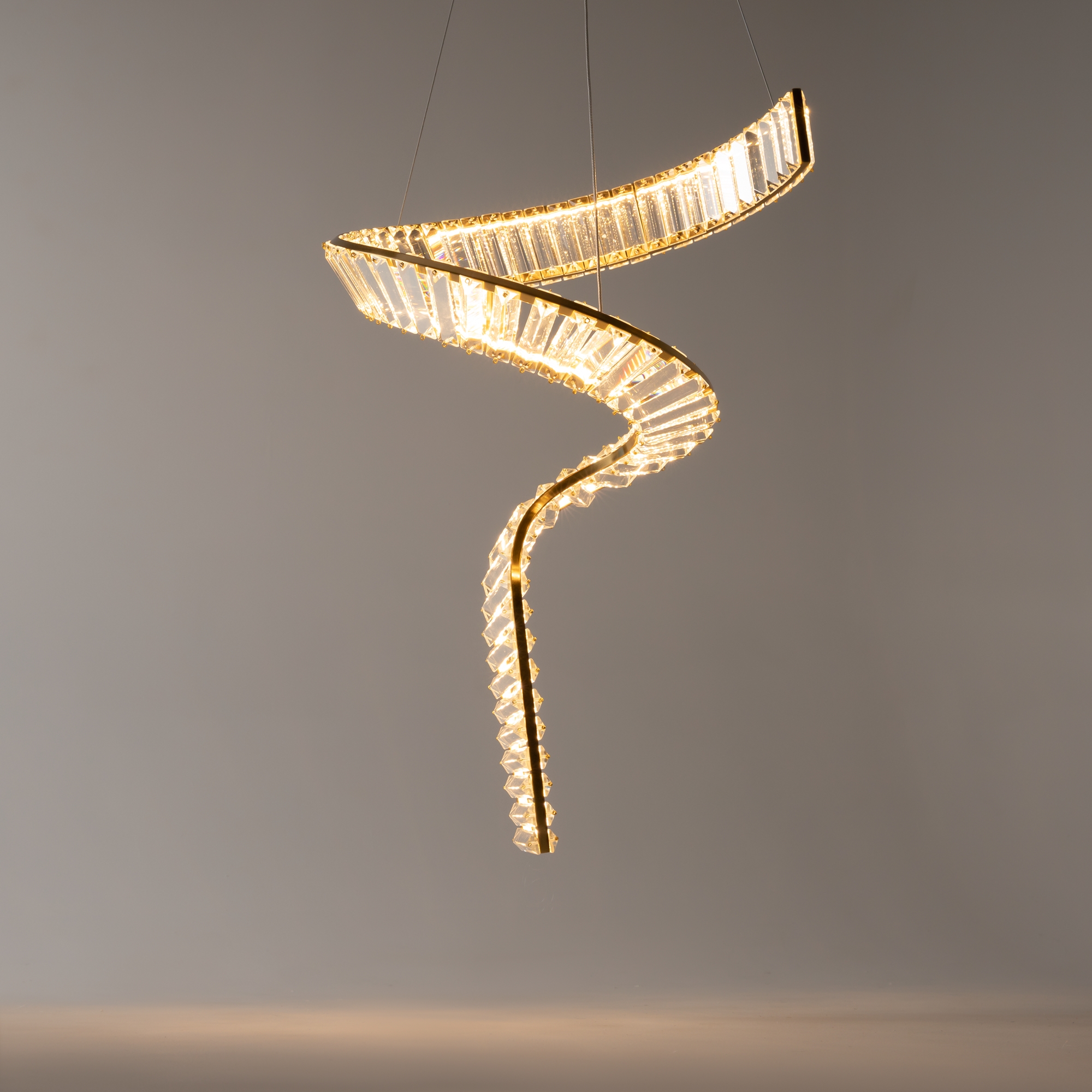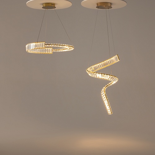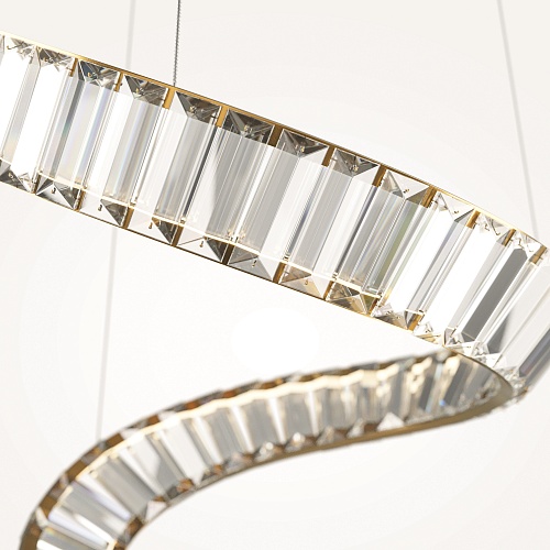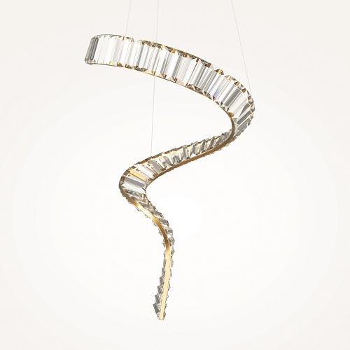 Металлическая арматура, цвет - латунь. Асимметричный хрустальный декор. LED-источник света. Цветовая температура - 3000К. Высокий индекс цветопередачи 90Ra