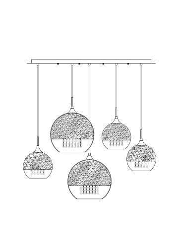 Арматура из металла в двух оттенках: никель и золото. Часть плафона выполнена из металла в тон арматуре, другая часть — из прозрачного стекла. Декоративные подвески внутри плафонов. Регулируемая высота.