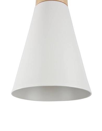 Арматура и плафон из металла в двух оттенках: белый и серый. Декоративный элемент из бука. Дерево покрыто бесцветным лаком. Актуальная скандинавская эстетика. Регулируемая высота. Источник света - лапма с цоколем Е27.