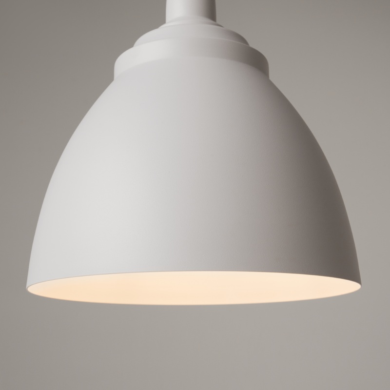 Арматура и плафон из металла. Три варианта оттенков: белый, серый и черный. Порошковое окрашивание с эффектом муара. Высота регулируется