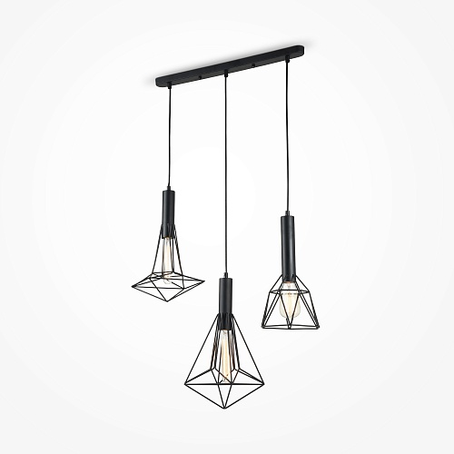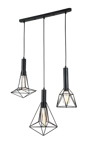 Арматура – металл, цвет – черный. Декоративные плафоны из черной металличе ской проволоки. Высота регулируется длиной шнура. Источник света - лампа с цоколем Е27.