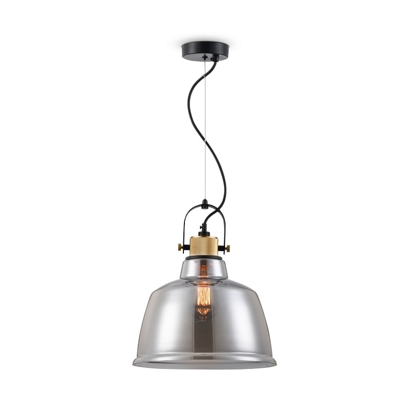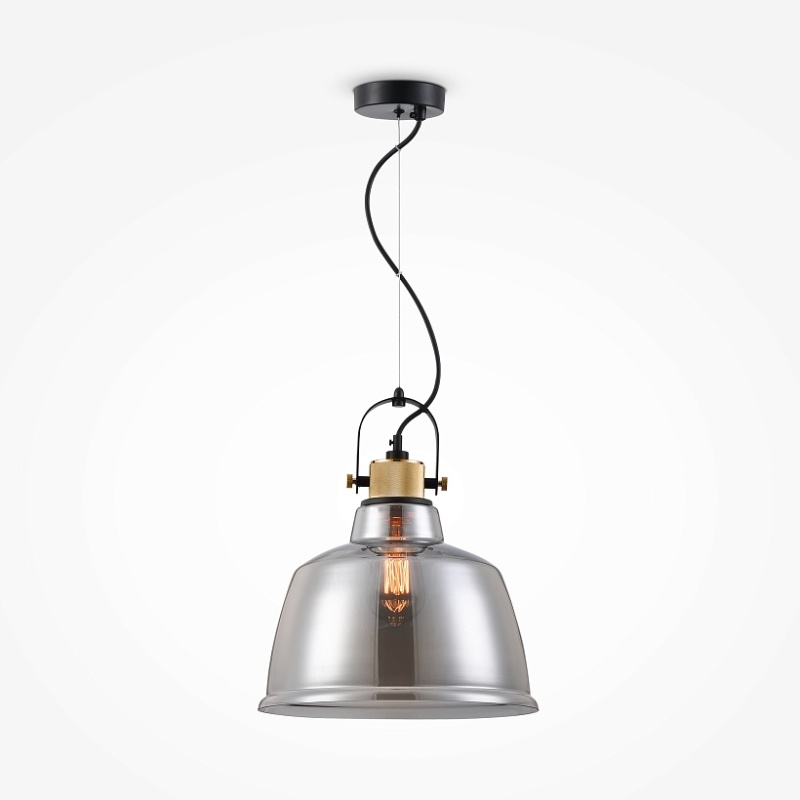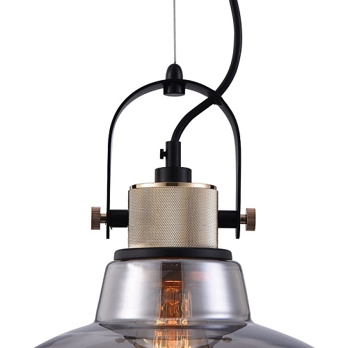 Арматура из металла в черном цвете. Часть металлических элементов гальванизирована в цвет латуни. Плафоны из стекла в янтарном, прозрачном и дымчатом оттенке. Индустриальная стилистика. Высота подвесных моделей регулируется.