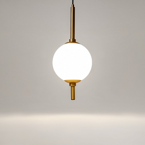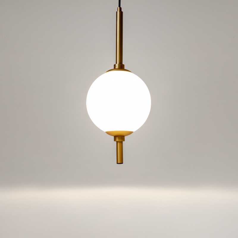 Металлическая арматура в черном цвете. Плафоны-сферы из белого стекла. LED-источник света с цветовой температурой 3000К. Удобные выключатели вверхней части арматуры. Функция раздельного включения световых элементов