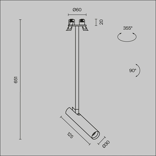 Материал корпуса – металл; цвета - чёрный, чёрный и латунь, белый. Жёсткое основание корпуса. Поворотный механизм. Утопленный LED-источник света. Цветовая температура 3000К или 4000К. Высокий коэффициент цветопередачи >90. Дополнительный фильтр. Совместимость с драйверами DALI и Triac для изменения цветовой температуры и диммирования.