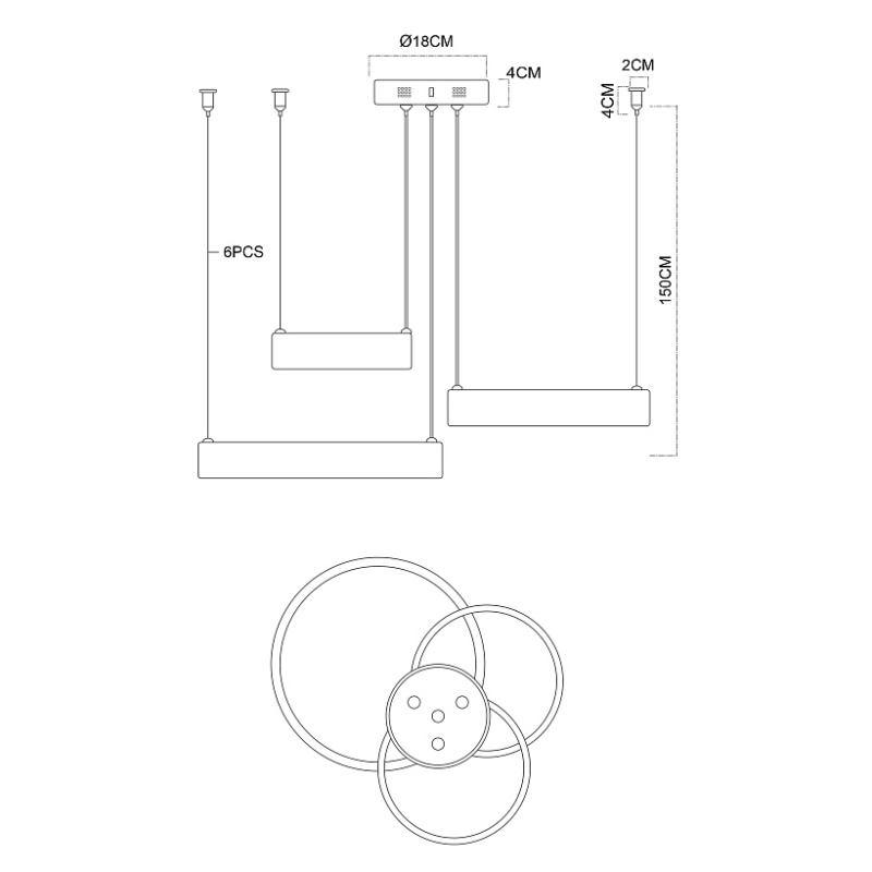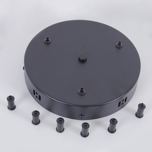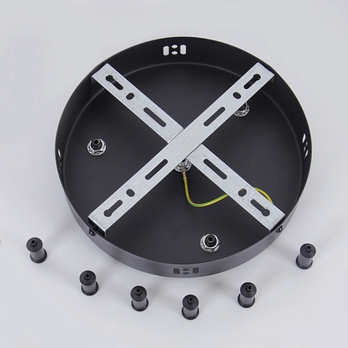 Универсальное крепление в черном цвете для создания композиции из трех кольцевых люстр, в комплекте металлическая чашка крепления, коннекторы, аксессу