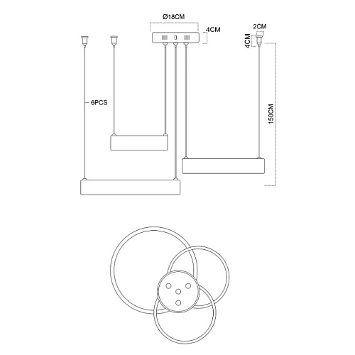 Универсальное крепление в цвете латунь для создания композиции из трех кольцевых люстр, в комплекте металлическая чашка крепления, коннекторы, аксессу