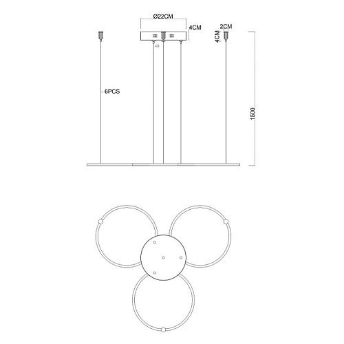 Универсальное крепление в цвете хром для создания композиции из трех кольцевых люстр, в комплекте металлическая чашка крепления, коннекторы, аксессуар