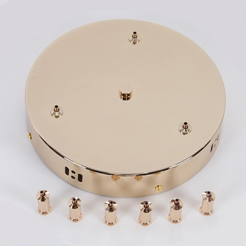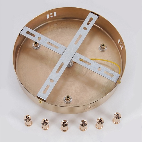 Универсальное крепление в золотом цвете для создания композиции из трех кольцевых люстр, в комплекте металлическая чашка крепления, коннекторы, аксесс