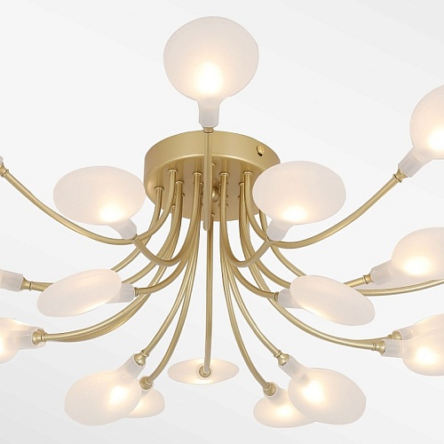 Металлический каркас в цвете золото, белые акриловые плафоны, сменные лампы.